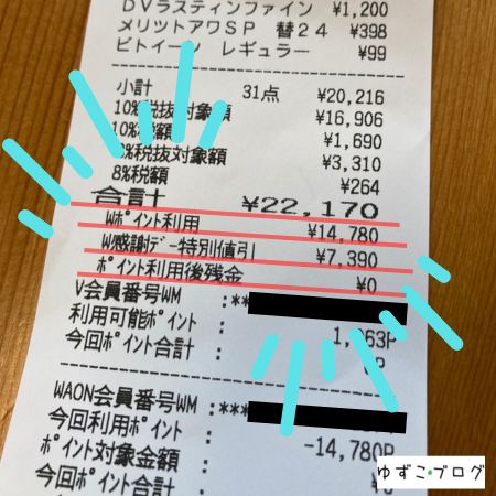 上に挙げたわが家の場合だと、WAON POINTが5,000ptになりますので、